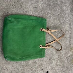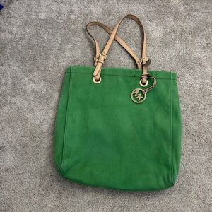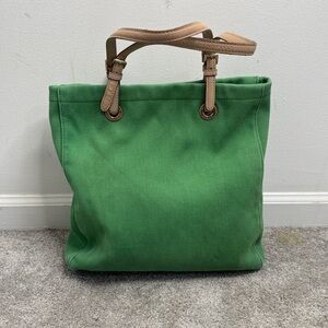 Michael Kors Green Canvas Tote Bag with Leather Straps