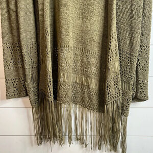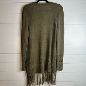 Michael Kors Army Green Long Sleeved Fringe Open Front Cardigan. Size Medium. NWT.