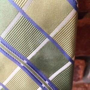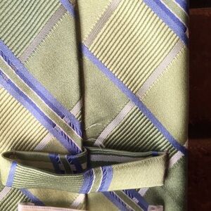 Here is a fun Michael Kors Green Silk Tie! It shows some signs of wear like light marks towards the bottom as shown in close up pictures. It measures approximately 59 inches.