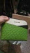 Chic crossbody with MK logo pattern. Features green and tan design. Perfect for everyday use.