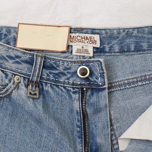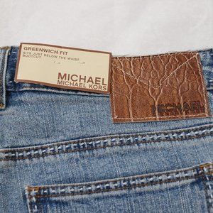 New Michael Kors Women`s Greenwch Fit Bootcut Blue Jeans in size 6/31. Sits just below waist. 99% cotton, 1% spandex. Contrast stitching. RN# 111818. From very early 2000`s.