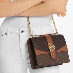 Michael Kors Greenwich SM Color-Block Signature Logo Crossbody Bag Brown Multi