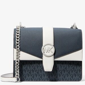 Michael Kors Greenwich Small Color-Block Signature Crossbody Bag Admiral Blue