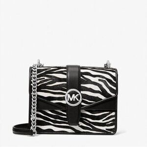 1499. Michael Kors | Greenwich Small Zebra Print Calf Hair Crossbody Bag | defining modern glamour since 1981. Brand new bag still wrapped.