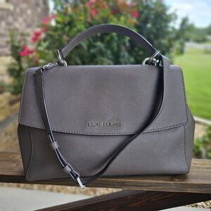 Michael Kors Grey Leather Medium Ava Top Handle Bag With Crossbody Strap
