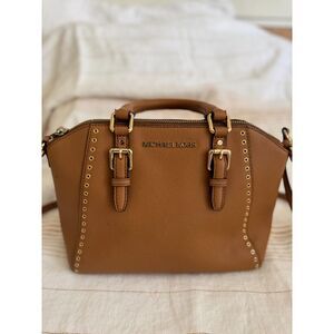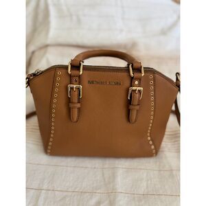 Classic MK design. A beautiful everyday leather Satchel w/detailed gold-tone grommets for subtle shine. Pre-loved w/light, visible wear that doesn’t take away from its style (see photos). Great neutral tone for all seasons, pairs perfectly with denim, boots, or a sundress.