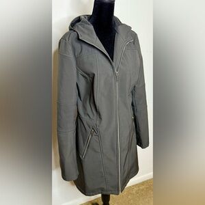 Michael Kors Gun metal Gray soft shell mid length Fall Winter coat hood medium