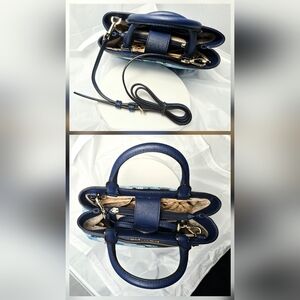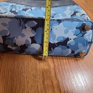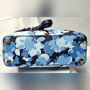 MICHAEL Michael Kors Hailee XS Crossbody Satchel in Navy Floral with Gold-tone Hardware. Rolled handles and matching crossbody strap. Snap-closure