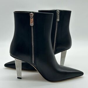 Michael Kors Halle Leather Ankle Bootie Black with Crystal Heel Size 7.5M NWB