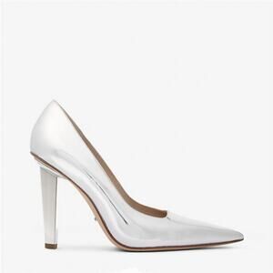 Michael Kors Halle Leather Metallic Pump Heels Silver Sz 7M
