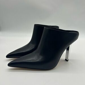 Michael Kors mule pumps, black leather heels, pointed toe mules, silver block heel, designer shoes, high heel mule, slip-on pumps, size 6M shoes, Michael Kors Halle