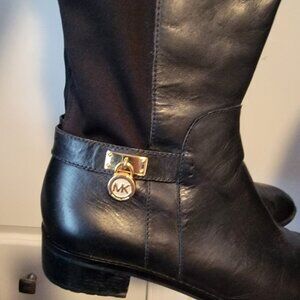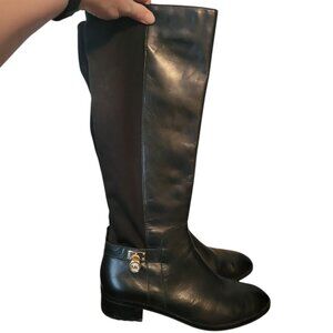 Michael Kors Hamilton Black Leather Riding Stretch Tall Zip Boot