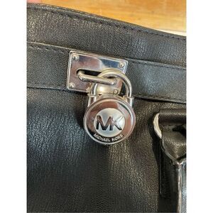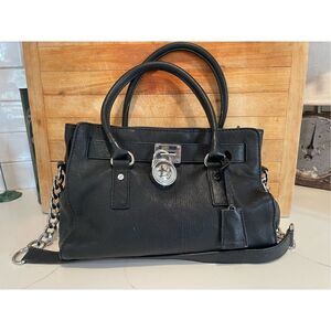 Michael Kors Hamilton Black Saffiano Leather Dual Handle Shoulder Bag Medium Pur