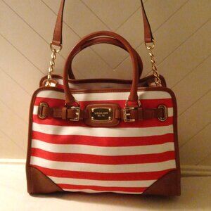 Michael Kors Hamilton Large Mandarin/White Striped Canvas Tote