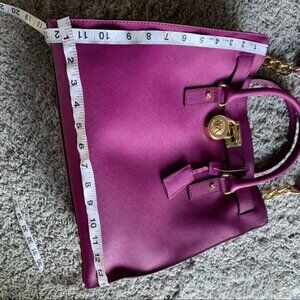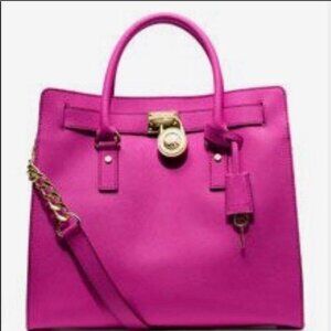 Authentic Michael Kors Hamilton Satchel Saffiano Leather in Fuchsia/Raspberry/Hot Pink Color