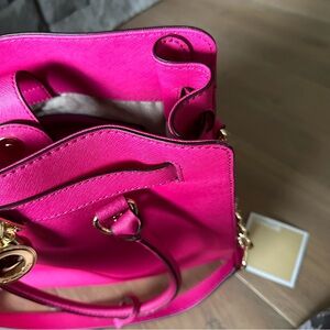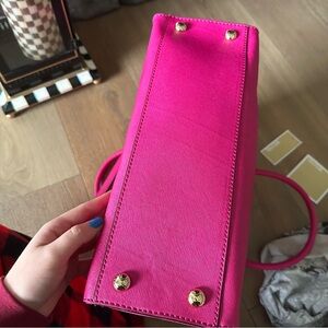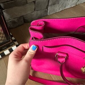 Like new. I am the original owner and always kept the bag stuffed inside a dust bag. Gorgeous bright pink with gold hardware. Worn only a few times.