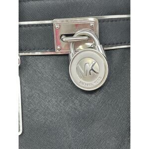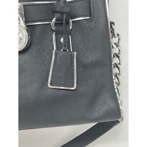 Michael Kors Hamilton Leather Black with Silver Trim Satchel Handbag Bag