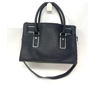 Michael Kors Hamilton Leather Black with Silver Trim Satchel Handbag Bag