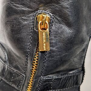 Michael Kors Hamilton Lock Black Leather Riding Boots 2" Heel Size 7M