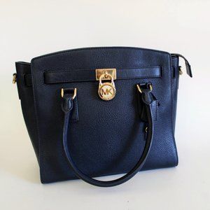 Michael Kors Hamilton Navy Blue Large Leather Satchel with Removable Strap