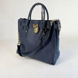 Michael Kors Navy Leather Hamilton Chain MK Signature 2 Way Shoulder Handbag