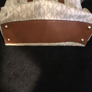 Large Hamilton, Beige & Tan, shows some signs of wear, Absolutely loved using this bag, has 5 inside pockets, one of my fav MK bags! Has 2 handles or shoulder strap. (Height: 9.75in / 25cm) / (Length: 15.25in / 39cm) / (Depth: 7.5in / 19cm)