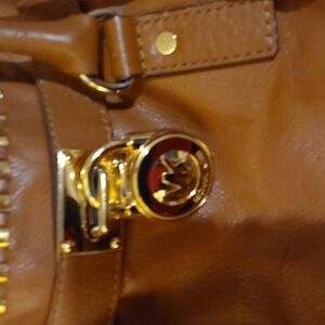 Michael Kors Hamilton SATCHEL PURSE Neutral Cognac Gorgeous Gold
