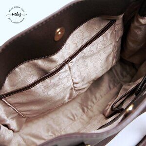 Michael Kors Hamilton Saffiano Chain Leather Brown Gold Shoulder Tote Bag Duster