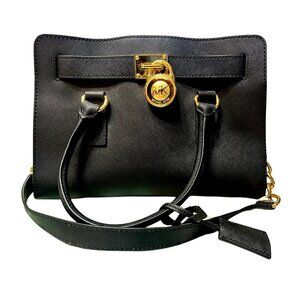 #MichaelKors #Hamilton #SaffianoLeather #Satchel #HandBag #Designer #Black #GoldHardware #Crossbody