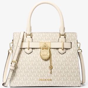 Michael Kors Hamilton Small Logo Satchel Bag Light Cream Multi