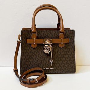 Michael Kors Hamilton Small Satchel Shoulder Crossbody Bag MK Brown