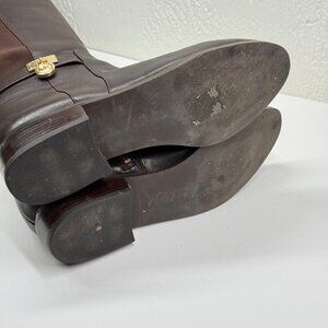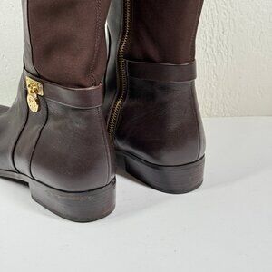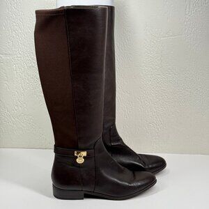 Michael Kors Hamilton Tall Boot Dark Leather Brown Leather Side Zip Size 9M