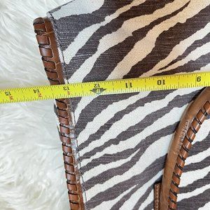 - Tiger Print Canvas with Brown Leather Trim and Goldtone Hardware