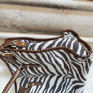 Michael Kors Hamilton Whipped Tiger Animal Print Canvas Brown Hand Shoulder Bag