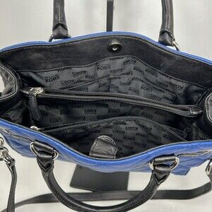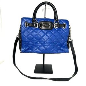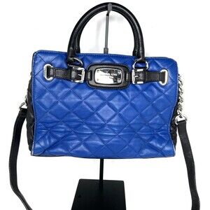 Michael Kors Hamilton Womens Leather Quilted Satchel Handbag Blue Black