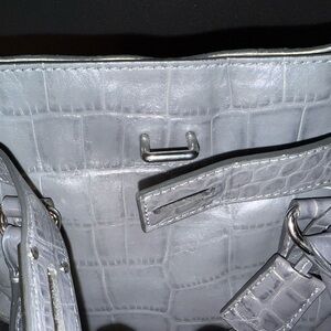 Michael Kors Hamilton gray crocodile embossed shoulder satchel purse