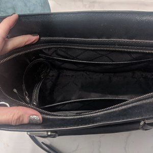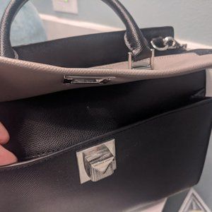 GORGEOUS AND CLASSY - Michael Kors Black, White and Taupe purse with both handles and a chain to carry as a crossbody or shoulder bag.