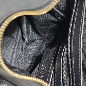 Michael Kors handbag black leather handbag. Trimmed in gold metal accented with black lether links. Just like every woman should have that black dress for use in any occassion so true with hand bags. virtually goes with anything.