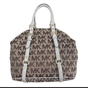 Michael Kors Handbag Bedford Women Medium Logo Satchel Jacquard Beige