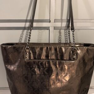 Michael Kors Handbag Bronze Patent Leather Top Handles with Zip Closure