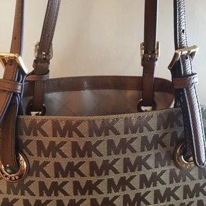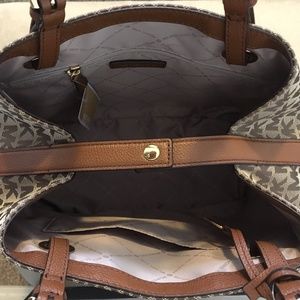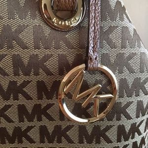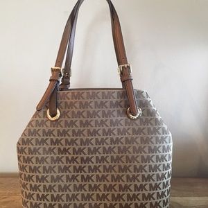 Micheal Kors Handbag Logo Jacquard Voyager Large Tote. Condition is New with tags. Shipped with USPS Priority Mail. The Micheal Kors Voyager Logo Jacquard shoulder bag is a stylish, wear-everywhere accessory. In our logo jacquard, it boasts generous top handles and high-shine hardware. Its spacious design renders it a practical and polished counterpart to day and night looks.• 46% Linen/34% Cotton/20% Polyester• Trim: 100% Leather• Gold-Tone