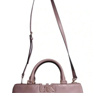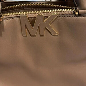 Beige/gray color. Excellent condition. Many interior pockets and button and zip closure. Measures 13 x 9 inches approximately. Crossbody strap. Original dust bag included.