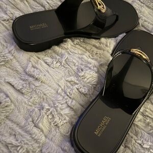 Michael Kors Hannah Jelly T-Strap Sandals Size 10, color black New.