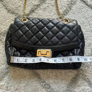 Michael Kors Hannah Quilted Black Soft Leather Gold Chain Shoulder Crossbody bag