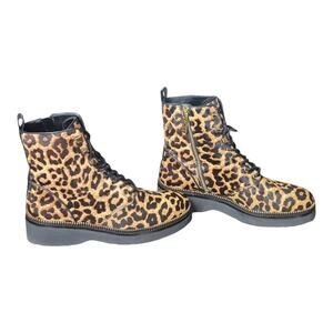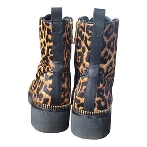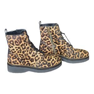 Michael Kors Haskell Leopard Calf Hair Lace Zip Up Combat Boots US 9M