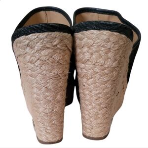 has some fraying on the inner side of one shoe, and some light almost pink color above the wedge.