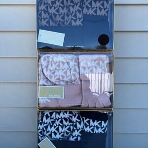 Michael Kors Hat,Gloves & Scarf Set MK Signature Cold Weather Chocolate