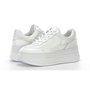 Michael Kors Hayes Snake Embossed Leather Platform Sneaker - 6 Optic White