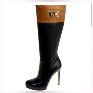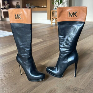Michael Kors Hayley Black Boots Knee High MK Platform Size 8.5