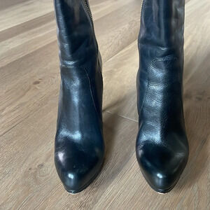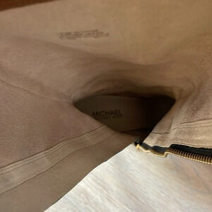 Step up your style with this high-impact heel! Genuine leather boot Leather sole Slight platform offers height Luxe leather widens at the top for easy on/off Dramatic full zip Classic MK gold tone monogrammed hardware Cushioning in the footbed. Heel 5"